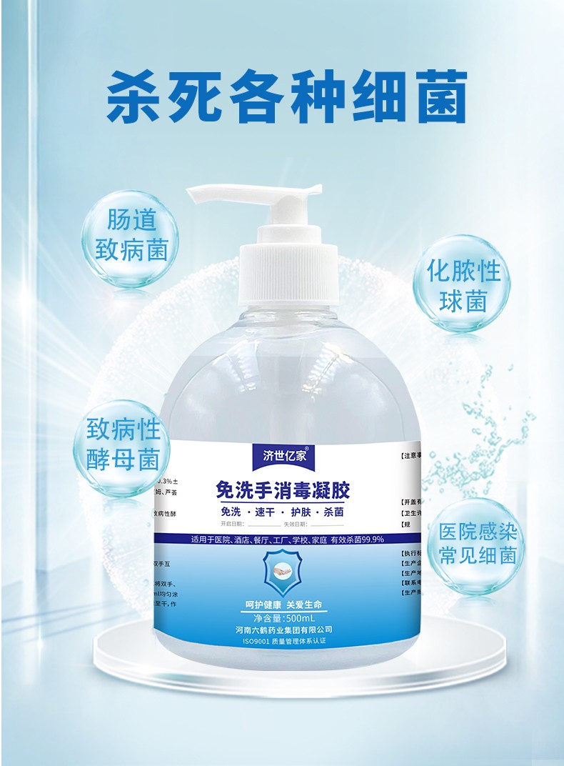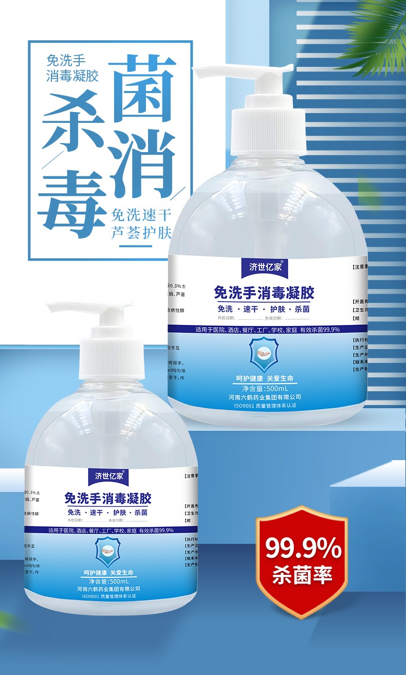 濟世億家免洗手消毒凝膠500ml 乙醇抗菌抑菌洗手液產(chǎn)品說明: