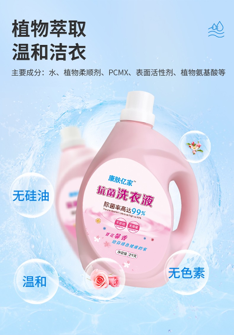 柔護香味持久抑菌洗衣液2KG實惠裝家用消毒衣物除菌除螨產(chǎn)品說明: