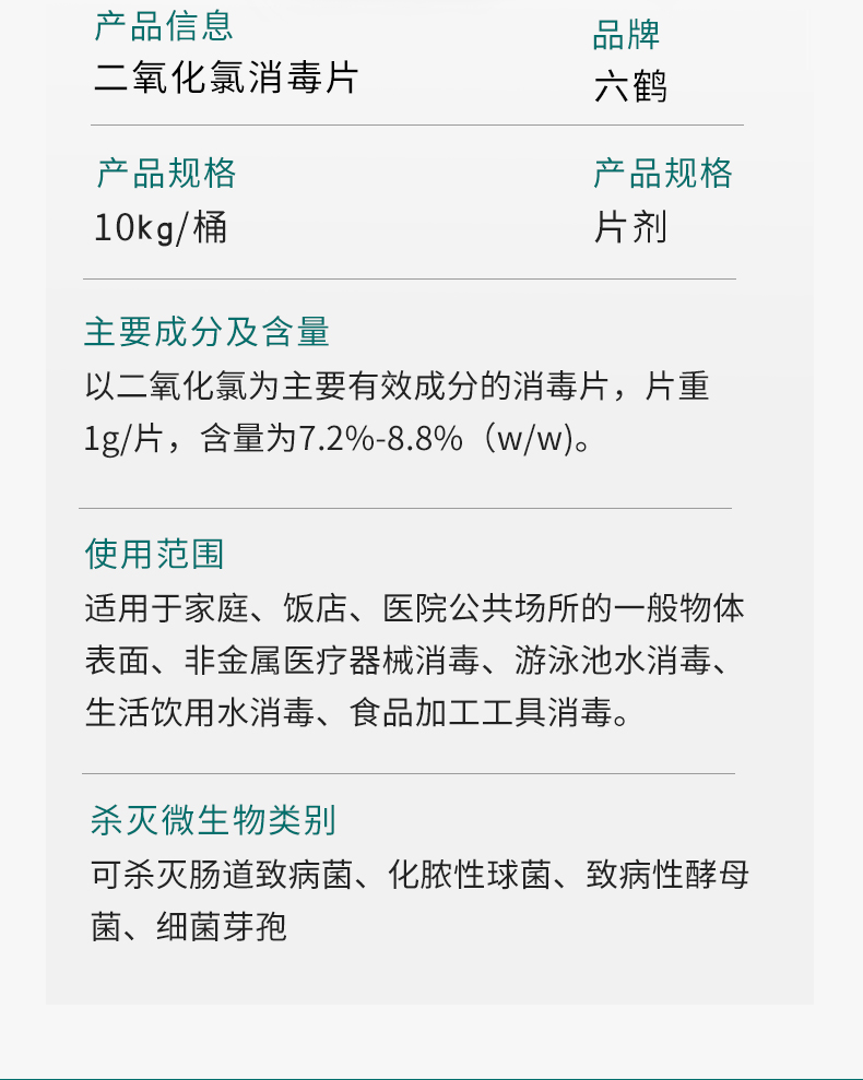 六鶴居家含氯84消毒片二氧化氯生活水泡騰消毒片10kg產(chǎn)品說明: