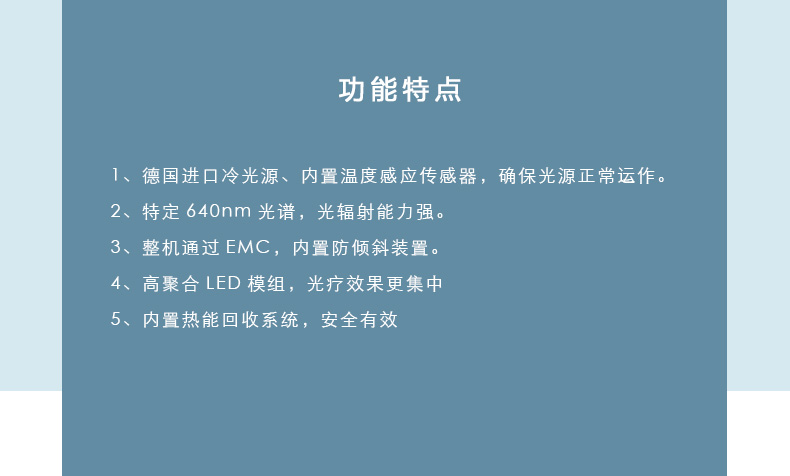 7、紅光輻射照度:3級可調(diào),105mW/cm2