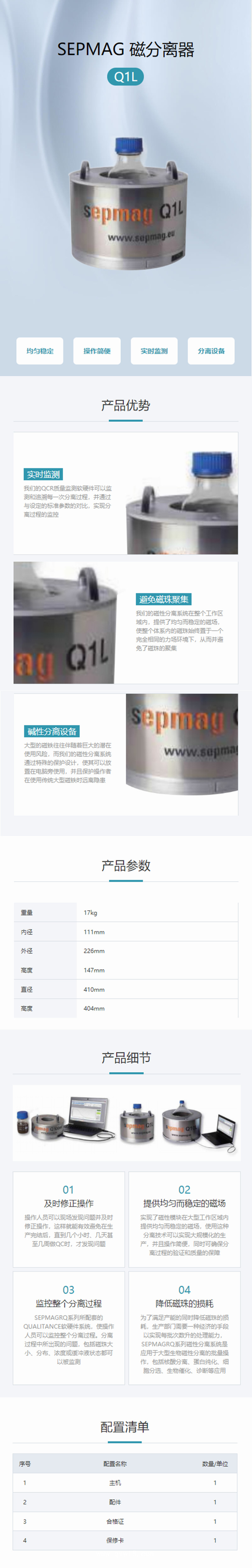 SEPMAG磁分離器-Q1L產(chǎn)品說明: