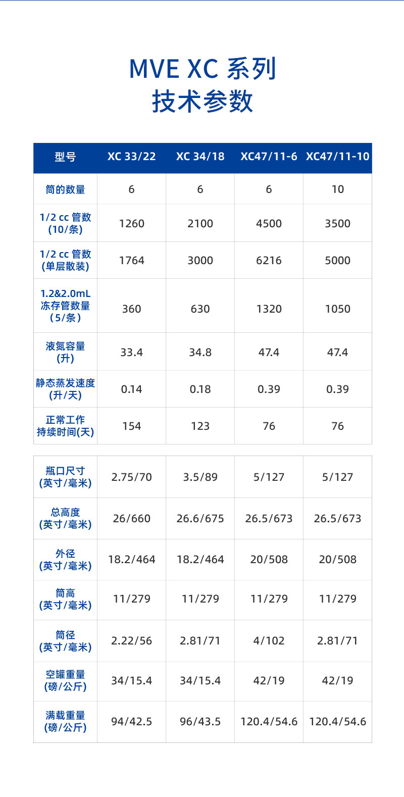 品牌 MVE ? 產(chǎn)品名稱 液氮生物容器 ? 貨號(hào) V122463 ? 型號(hào) XC47/11-6 ? 可儲(chǔ)存樣品數(shù) 不少于750個(gè) ? 工作液氮容量 47.4L ? 液氮靜態(tài)蒸發(fā)速率 0.39L/天 ? 靜態(tài)保存期 76天 ? 重量 19KG ? 高度 673MM商品參數(shù)