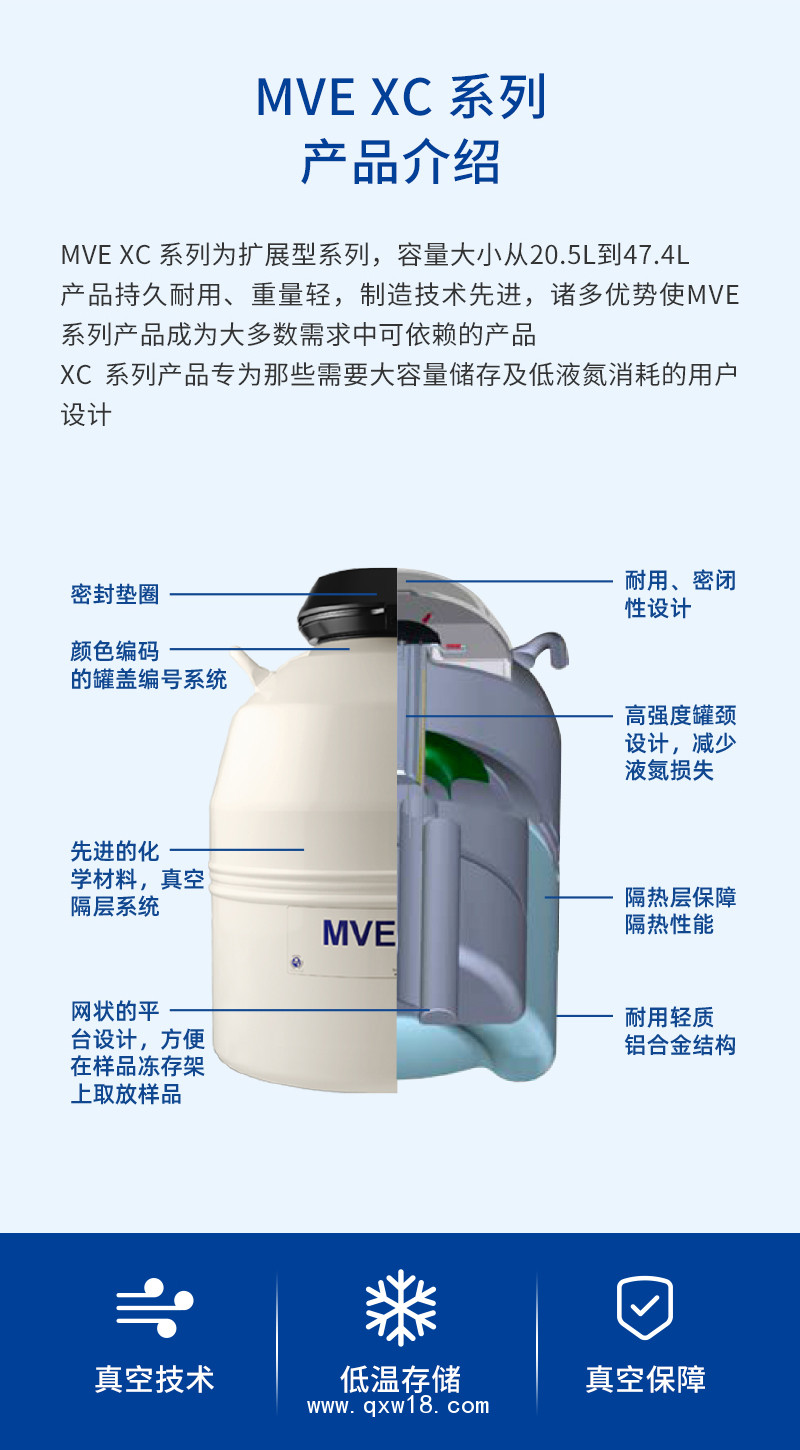 MVE液氮罐-XC47/11-6-低溫儲(chǔ)存47L液氮生物容器產(chǎn)品說明:
