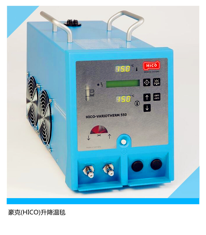 HICO-AQUATHERM 660升溫毯德國先進(jìn)生產(chǎn)技術(shù)精心制造,體積小,重量輕,噪音低;磁聯(lián)接增壓水泵,免維護(hù),長壽命,安全可靠。 智能溫度控制系統(tǒng),無需體溫傳感器,操作簡便。聚胺脂蜂窩水毯堅(jiān)固柔軟,便于清洗和消毒; 電熱元件,效率高,制熱快,無氟環(huán)保。溫度范圍 35-39℃連續(xù)可調(diào),可同時聯(lián)接雙體毯,有自檢、超溫、水位報(bào)警功能、設(shè)備運(yùn)行狀態(tài)顯示及進(jìn)出水溫度顯示,用于手術(shù)后復(fù)溫(毯溫35-39℃), 是神經(jīng)內(nèi)科、神經(jīng)外科、ICU、急診室、兒科的理想設(shè)備。