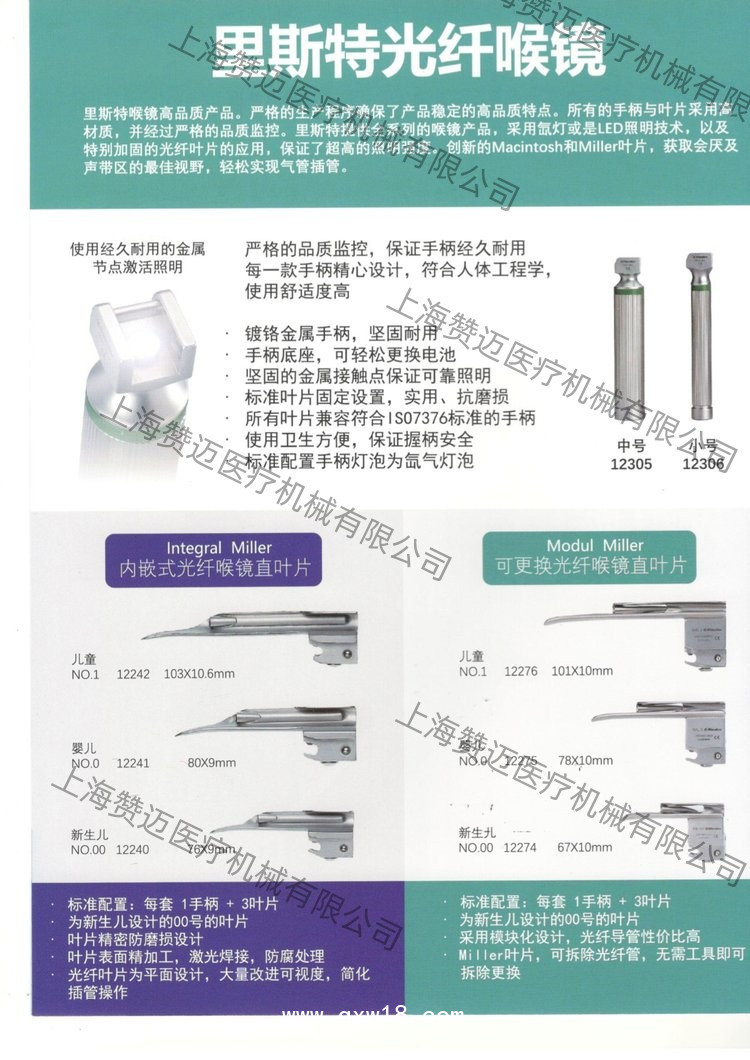 里斯特喉鏡高品質(zhì)產(chǎn)品。嚴(yán)格的生產(chǎn)程序確保了產(chǎn)品穩(wěn)定的高品質(zhì)特點(diǎn)。所有的手柄與葉片采用高材質(zhì),并經(jīng)過嚴(yán)格的品質(zhì)監(jiān)控。里斯特提供全系列的喉鏡產(chǎn)品,采用疝燈或是LED照明技術(shù),以及特別加固的光纖葉片的應(yīng)用,保證了超高的照明強(qiáng)度。創(chuàng)新的Macintosh和Miller葉片,獲取會厭及聲帶區(qū)的視野,輕松實(shí)現(xiàn)氣管插管。