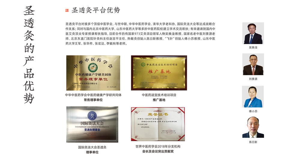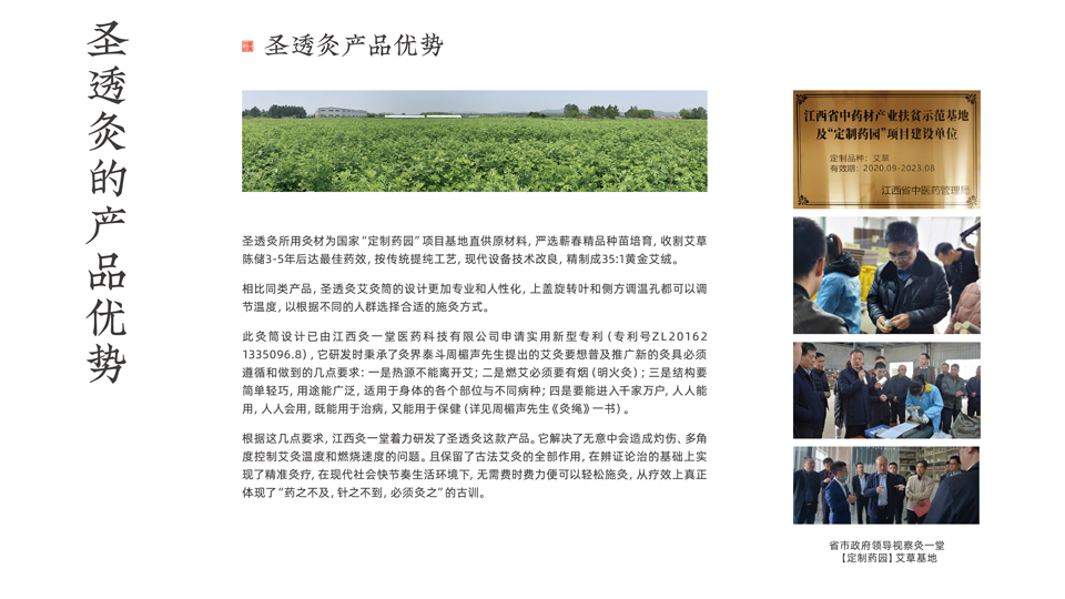 傳統(tǒng)艾灸在臨床上已有上千年的歷史,延續(xù)至今大都采用手持艾條灸的方式。圣透灸品牌的灸療裝置,在延續(xù)傳統(tǒng)中醫(yī)艾灸懸灸特點(diǎn)的同時(shí),克服臨床耗費(fèi)人力和不能多穴同灸的困難,圣透灸開(kāi)創(chuàng)了替代人工治療的精準(zhǔn)灸療的創(chuàng)新革命,解決灼傷和自由溫控的問(wèn)題同時(shí)增強(qiáng)了灸療效果,充分將灸療部位所需熱感和近紅外線(xiàn)作用發(fā)揮到最大,被施灸者體驗(yàn)更輕松。中醫(yī)綠色療法,安全無(wú)副作用輕松便捷更健康!