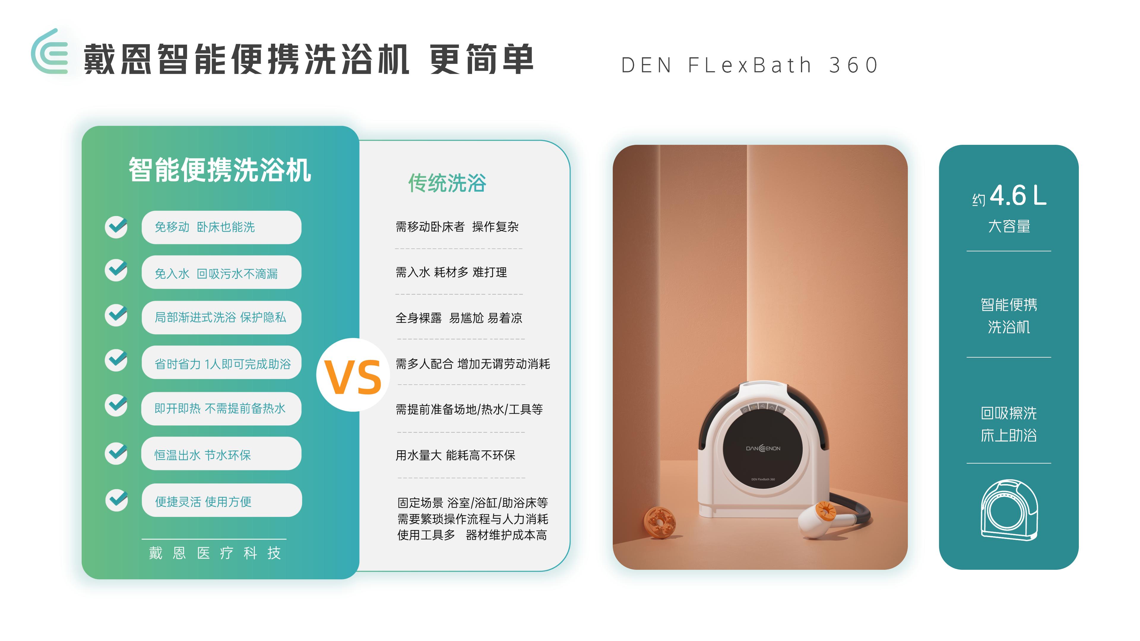 戴恩智能便攜洗浴機-DEN FLexBath 360產(chǎn)品說明: