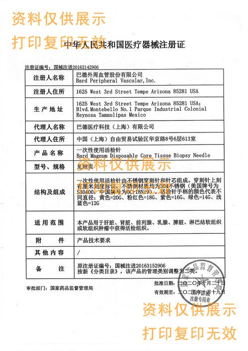 美國(guó)巴德BARD一次性使用活檢針MN1413產(chǎn)品說(shuō)明: