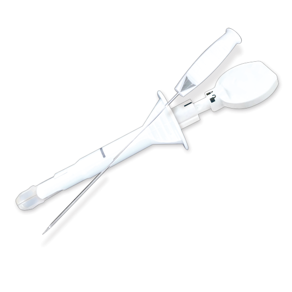 本產(chǎn)品適用于將體外打結(jié)縫線放入腹腔鏡術(shù)區(qū)中。
