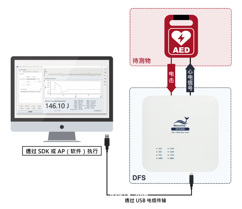 專為 R&D 和 QA 設計的 AED 測試儀,整合多種測試設備和功能,搭配專屬軟件,單一畫面即可顯示電擊波形、焦耳數(shù)、參數(shù)及特征點數(shù)值,并自動存儲完整測試數(shù)據(jù),建立測試歷程。