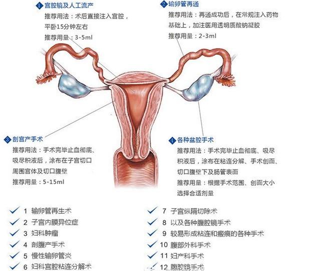 3. ?顯著減少剖宮產(chǎn)術(shù)后粘連和減少盆腔粘連,減少人流術(shù)后宮腔粘連和感染,提高受孕率。
