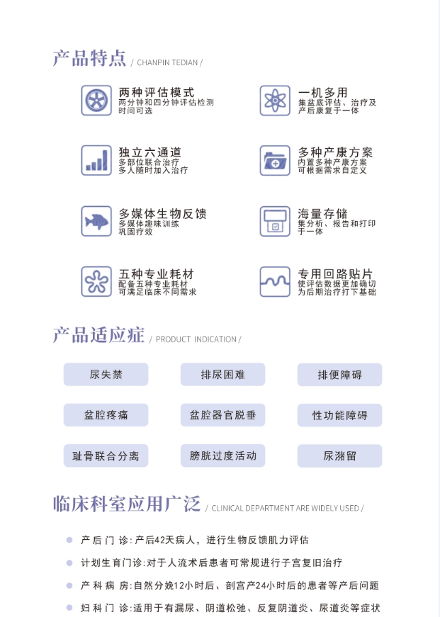生物刺激反饋儀 盆底肌訓練儀 婦產科設備產后康復綜合治療儀產品說明: