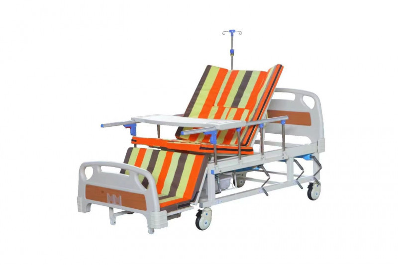 ABS床頭床尾,四擋半不銹鋼護欄,搖桿系統(tǒng)4套,輸液桿,靜音輪,餐桌,洗頭盆,便盆