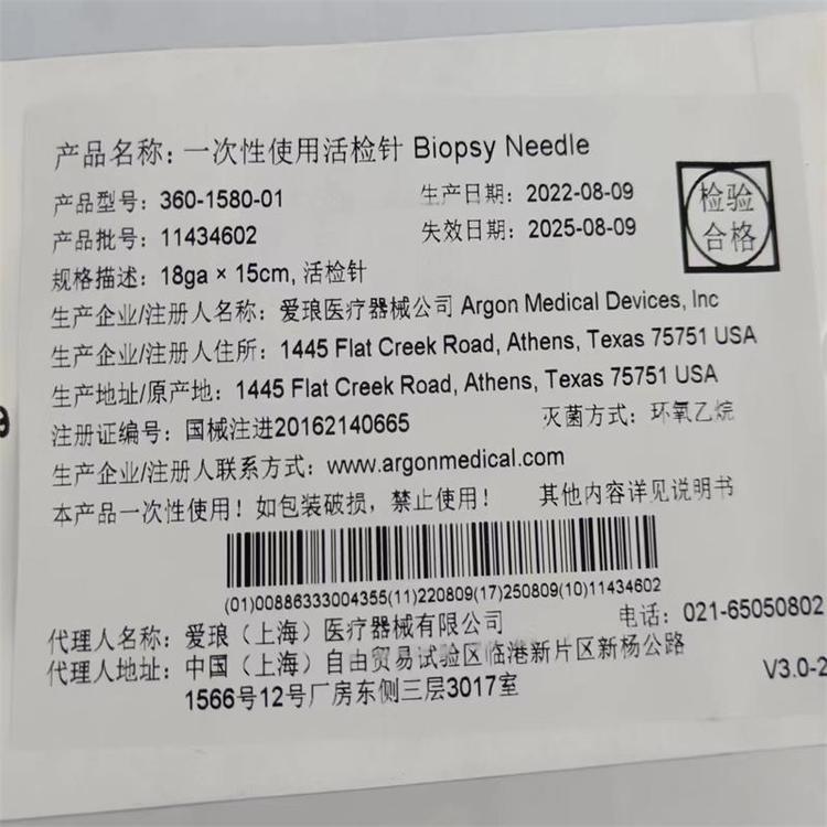 愛瑯 ARGON 一次性使用活檢針 306-1580-01 進(jìn)口產(chǎn)品說明: