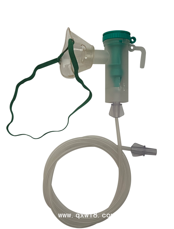 在呼吸裝置系統(tǒng)中,一端接入氧氣,用氧氣的壓力將放置于霧化器中的藥劑霧化,產(chǎn)生的霧化氣體通過(guò)霧化器的另一端吸入病人口中。