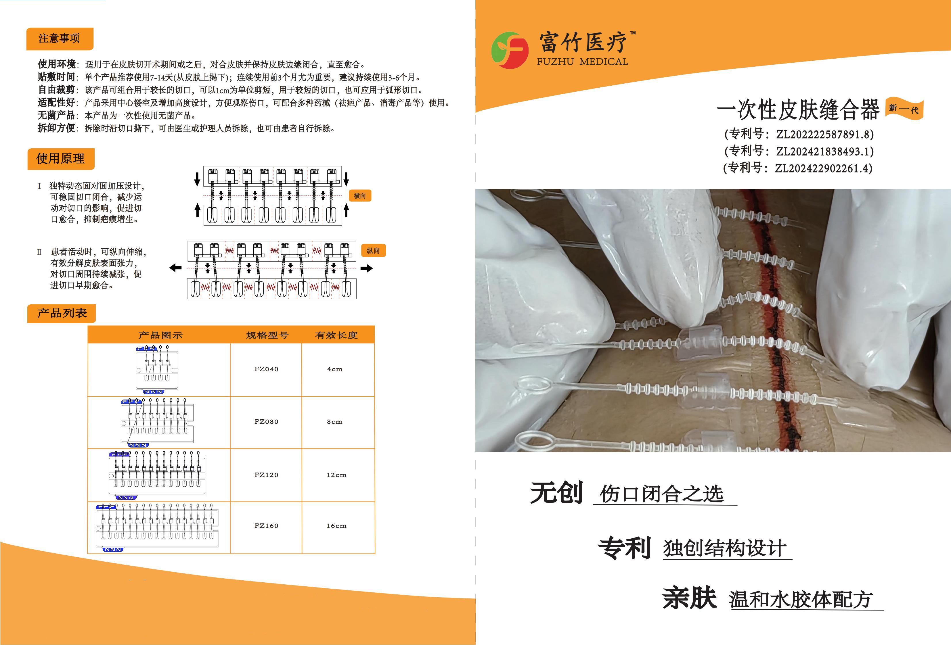 臨床優(yōu)勢(shì):美化疤痕? 持續(xù)減張 低致敏性? 降低感染 切口閉合力可調(diào)? 動(dòng)態(tài)加壓設(shè)計(jì) 適配性好。無創(chuàng) 專利 親膚。