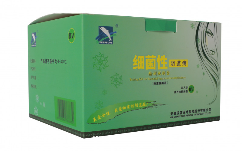 本檢測試劑盒是根據(jù)患BV的婦女陰道分泌物顯示出異常的唾液酸酶活性這一原理制成,利用一種特殊的唾液酸酶底物與BV患者陰道分泌物中存在的特異性唾液酸酶作用,可以使該結合物迅速水解,加入適當?shù)娘@色劑后,會發(fā)生明顯的顏色變化。通過對婦科陰道分泌物中唾液酸酶的定性檢測,用于細菌性陰道病的篩查。