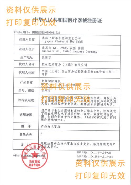 適用范圍:該產(chǎn)品與內(nèi)窺鏡和高頻電刀配套使用,經(jīng)尿道或?qū)m頸在生理鹽水中對(duì)前列腺或?qū)m腔進(jìn)行凝固、切割和等離子汽化操作。(WA22558C僅用于前列腺治療)。