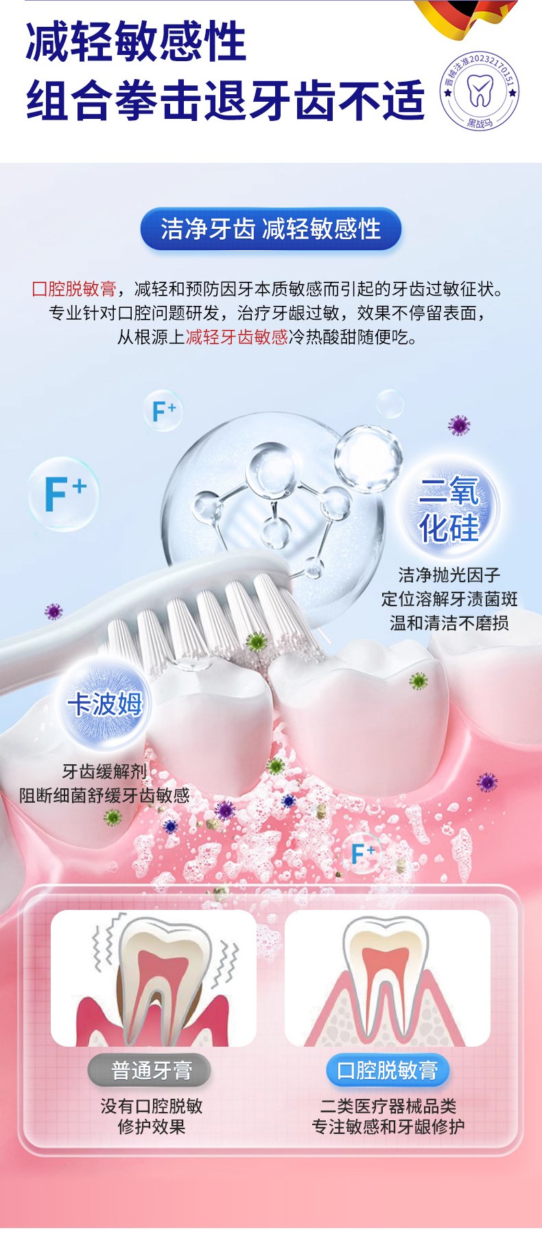 牙齒脫敏凝膠 醫(yī)用械字號牙膏產(chǎn)品說明: