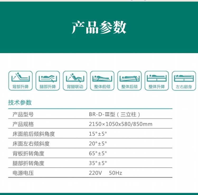 電動(dòng)病床三立柱式產(chǎn)品說明: