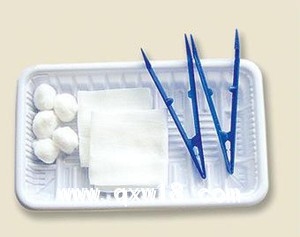 由基本配置醫(yī)用脫脂紗布塊、托盤和選用配置一次性使用手術(shù)洞巾、一次性使用PE檢查手套、一次性使用滅菌橡膠外科手套、一次性使用醫(yī)用橡膠檢查手套、一次性使用中單、一次性使用包布、無菌手術(shù)刀片、消毒刷、紗布繃帶、無菌自粘傷口貼、醫(yī)用縫合針、非吸收性外科縫線、碘伏棉球、酒精棉球、碘伏棉簽、醫(yī)用酒精棉簽、醫(yī)用鑷、一次性使用配藥注射器、碗、醫(yī)用檢查墊、止血鉗、一次性治療巾、醫(yī)用棉球、醫(yī)用棉簽、一次性孔巾、創(chuàng)口貼、剪刀、無菌塑柄手術(shù)刀、塑料袋、一次性使用止血帶、藥杯、透氣膠貼組成。