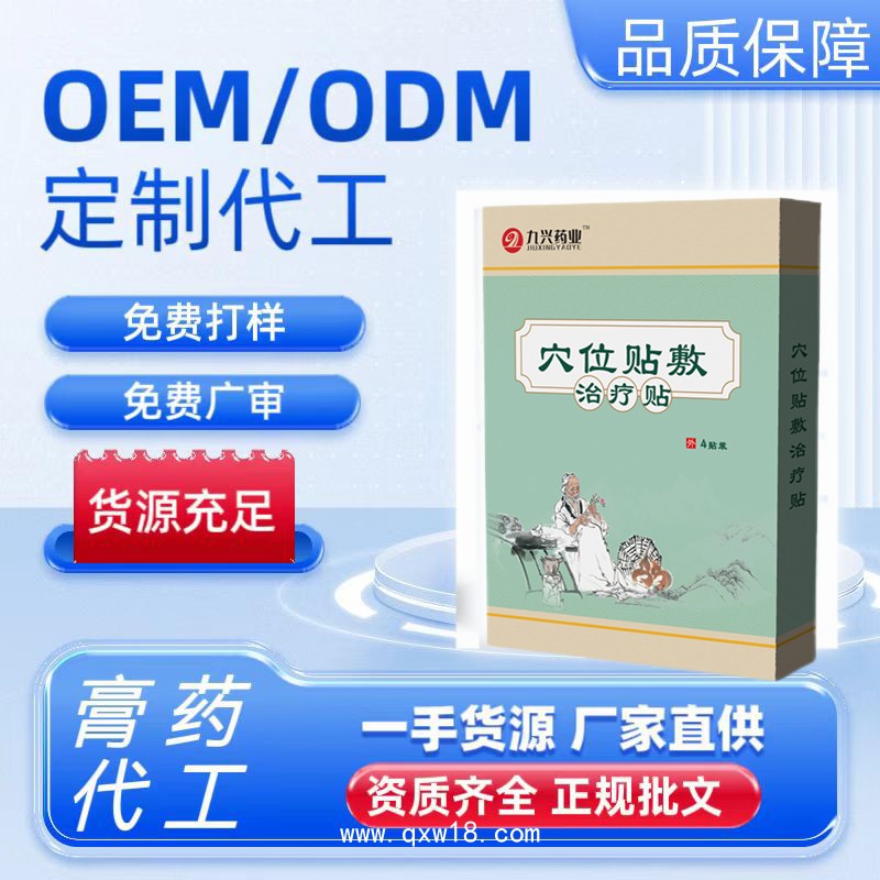 山東九興藥業(yè)有限公司專注穴位貼劑研發(fā)生產(chǎn)十余年,擁有十萬級(jí)GMP無菌車間及械字號(hào)生產(chǎn)資質(zhì),為品牌方提供穴位貼ODM/OEM代工、私模配方定制、小批量貼牌加工服務(wù),助力企業(yè)快速搶占百億貼敷市場(chǎng)!