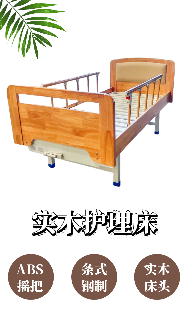 實(shí)木床頭床尾條式單搖護(hù)理床產(chǎn)品說明: