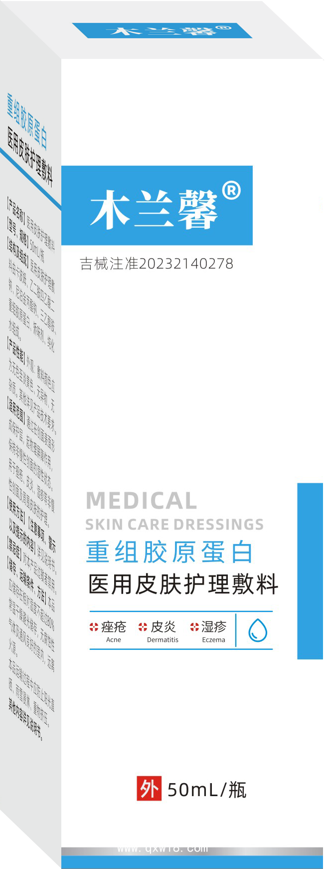 重組膠原蛋白醫(yī)用皮膚護理敷料產(chǎn)品說明: