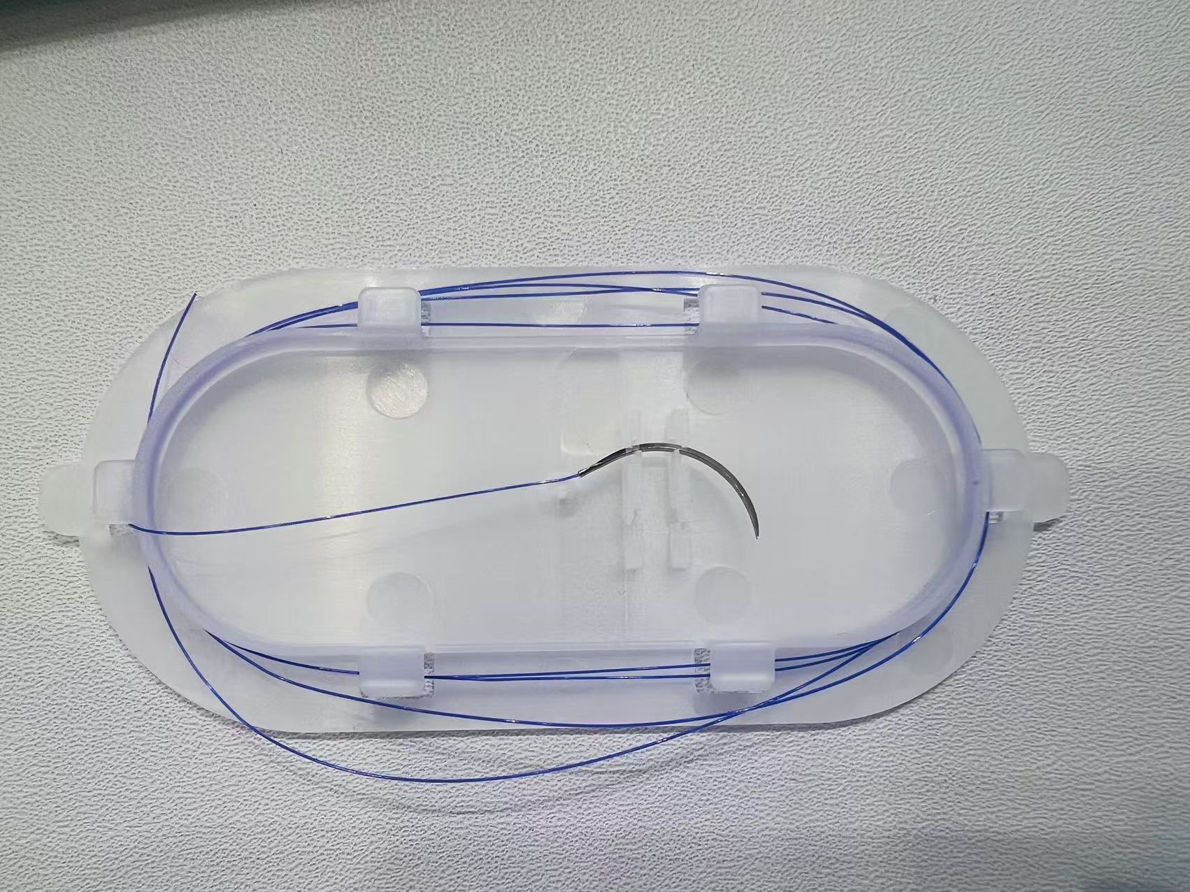 聚對二氧環(huán)己酮可吸收縫線分為帶針縫合線與不帶針縫合線兩種。帶針縫合線由聚對二氧環(huán)己酮材料制成一種單絲結(jié)構(gòu)的可吸收縫線和不銹鋼針組成??p線染紫色或未染色,染色以D&C紫羅蘭2號(D&CVioletNo.2)作染料;縫合針由SUS304不銹鋼材料制成。縫線無涂層,縫合針采用硅涂層。產(chǎn)品經(jīng)環(huán)氧乙烷滅菌,一次性使用。