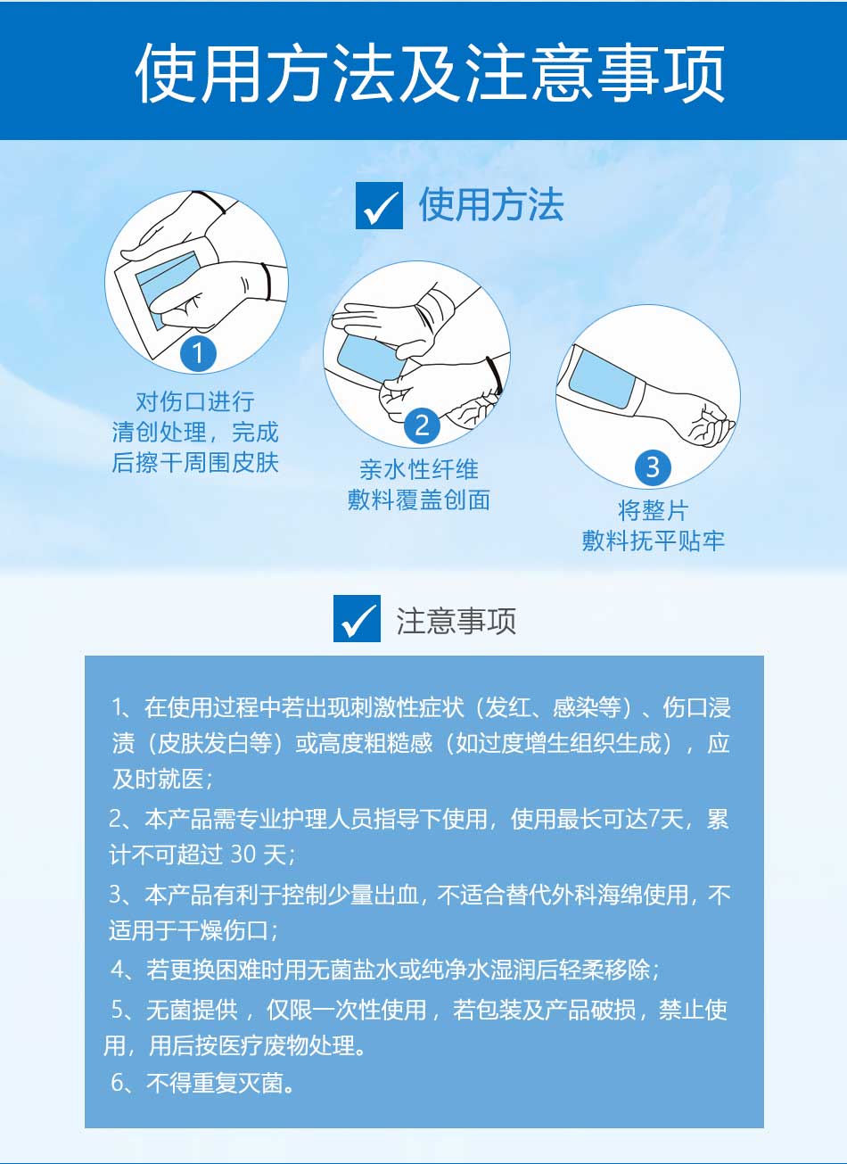 用于體表非慢性創(chuàng)面的覆蓋和吸收傷口滲出液。