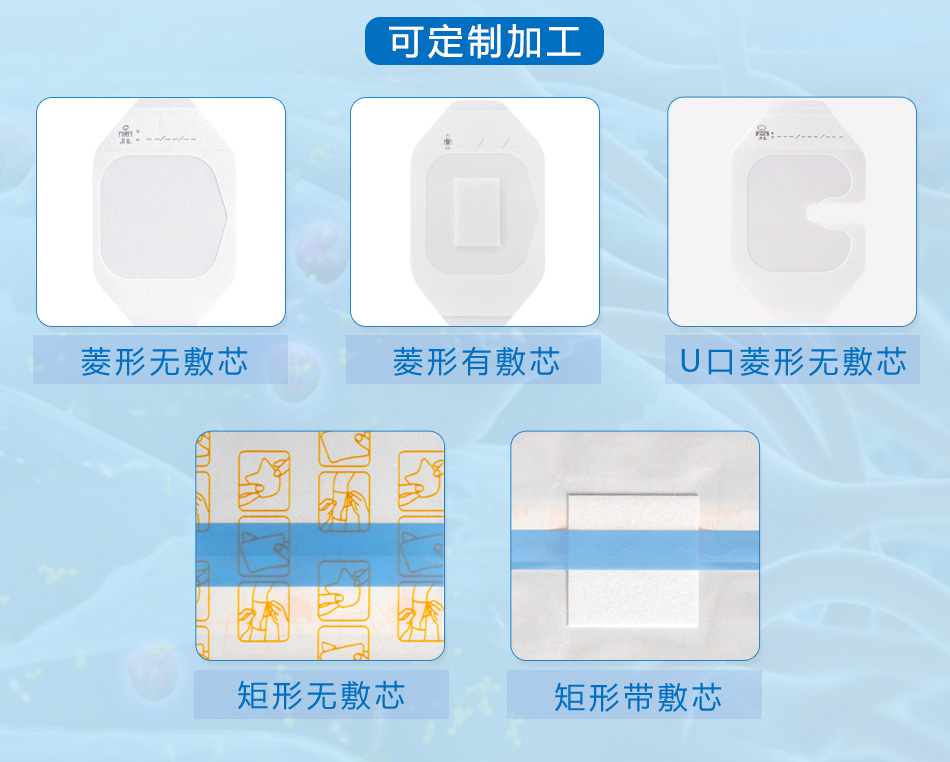 帶敷芯型用于非慢性創(chuàng)面 如淺表性創(chuàng)面、手術(shù)后縫合創(chuàng)面、機(jī)械創(chuàng)傷、小創(chuàng)口、擦傷、切割傷創(chuàng)面、穿刺器械的穿刺部位、I度或淺II度的燒燙傷創(chuàng)面、嬰兒肚臍口創(chuàng)口、激光/光子/果酸換膚/微整形術(shù)后創(chuàng)面)的護(hù)理,為創(chuàng)面愈合提供微環(huán)境。無敷芯型用于對穿刺器械(如導(dǎo)管)的穿刺部位的護(hù)理并固定穿刺器械。