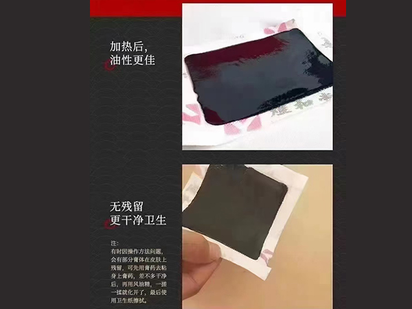 產(chǎn)品說明:注意事項:外用,不要直接粘貼在皮膚上,防止高溫燙傷;使用時若感到過熱,可適當加隔熱墊或外用袋。有皮膚感覺障礙者慎用。禁忌癥