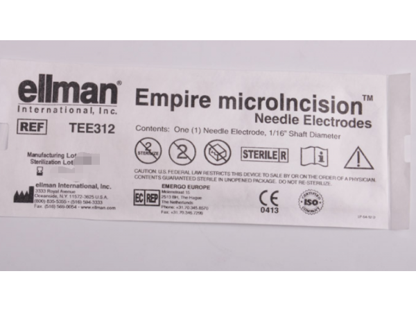 產(chǎn)品說明:ellman 艾爾曼微小切口針形電極系列TEE312產(chǎn)品說明:品牌:ellman 艾爾曼型號(hào):TEE312一次性使用/無菌包裝, (每盒2支) 有 1/16”