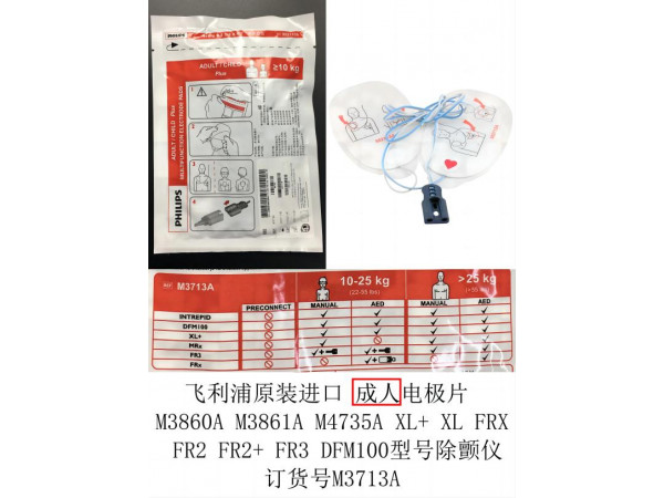 產(chǎn)品說明:飛利浦原裝進(jìn)口除顫儀成人電極片 接M3508A除顫電纜線 適用于M3860A、M3861A M4735A M3535A XL+ XL MRx FR2 FR2+FR3 DFM100型號