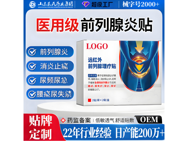 產(chǎn)品說明:前列腺貼生產(chǎn)廠家OEM貼牌代加工前列腺貼里面含有蒲公英,紫花地丁,牡丹皮,紅花,丹參,地龍,冰片等眾多的中藥材,這些中藥材