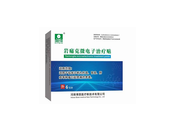 產(chǎn)品說(shuō)明:一、全國(guó)獨(dú)家?guī)酒b置的腫瘤動(dòng)態(tài)止痛貼劑。二、榮獲兩項(xiàng)國(guó)家發(fā)明專(zhuān)利和一項(xiàng)實(shí)用新型專(zhuān)利:《一種用于癌癥鎮(zhèn)痛的磁藥貼》、《一