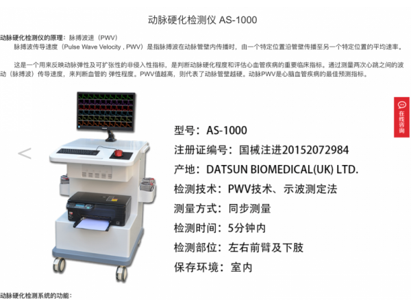 產(chǎn)品說明:一、設(shè)備功能動脈硬化檢測儀采用無創(chuàng)方式,快速對人體體表有代表性的動脈脈博波信號進(jìn)行采集,應(yīng)用分析軟件系統(tǒng)進(jìn)行自動分析,獲