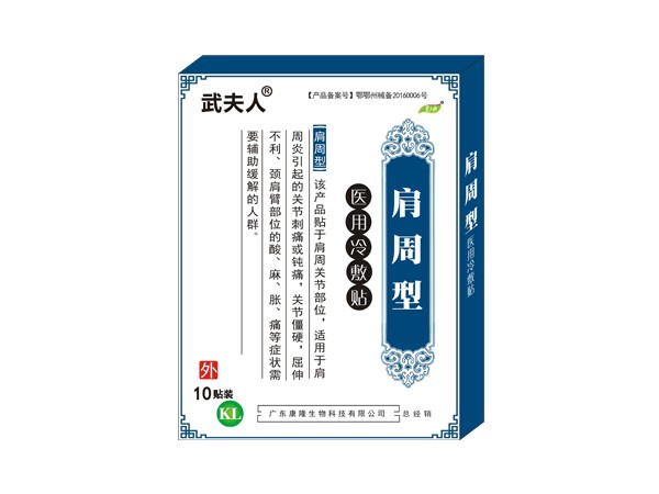 產(chǎn)品說明:該產(chǎn)品貼于肩周關(guān)節(jié)部位,適用于肩周炎引起的關(guān)節(jié)刺痛或鈍痛,關(guān)節(jié)僵硬,屈伸不利、頸肩臂部位的酸、麻、脹、痛等癥狀需要輔助緩