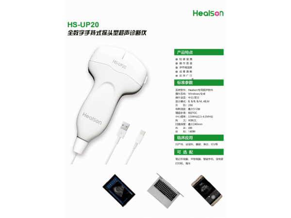 產(chǎn)品說明:全數(shù)字手持式探頭型超聲診斷儀,是匯聲科技自主研發(fā)生產(chǎn)的全球第一臺用通用芯片做到功耗最小的USB接口的探頭型超聲設(shè)備,通過USB