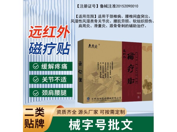 產(chǎn)品說明:【產(chǎn)品名稱】遠(yuǎn)紅外磁療貼(可OEM貼牌代加工)【產(chǎn)品規(guī)格】9cm*11cm*3袋/盒(代加工可自定義產(chǎn)品規(guī)格)【代加工模式】OEM/OBM/OD