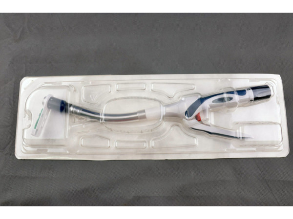 產(chǎn)品說(shuō)明:四排縫合釘成弧形排列,中間一把弧形切割刀。盆腔空間狹窄,弧形切割縫合更利于手術(shù)效果。手術(shù)視野大,便于操作。同一把器械,在
