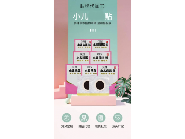 產(chǎn)品說明:山東世紀(jì)通醫(yī)藥科技有限公司膏藥生產(chǎn)廠家,兒科新產(chǎn)品小兒腹瀉貼、止咳貼、肺炎貼療效好、使用方法簡單,現(xiàn)面向全國承接兒科產(chǎn)品