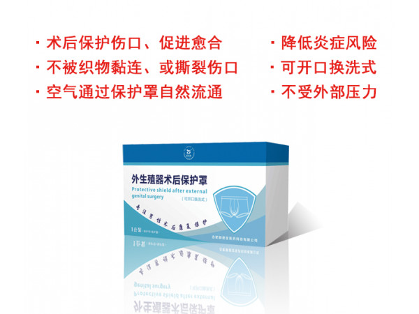 產(chǎn)品說(shuō)明:用于外生殖器手術(shù)后,保護(hù)手術(shù)部位不被擠壓,不接觸傷口,非無(wú)菌提供。保護(hù)罩與褲體可自行安裝,褲體可更換后自行清洗或殺菌。