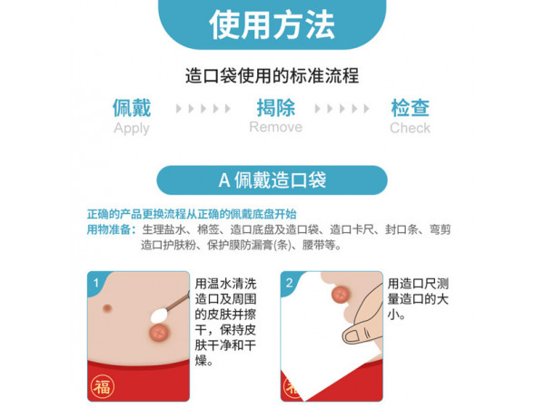 產(chǎn)品說(shuō)明:為回腸、結(jié)腸、直腸或尿道造口的護(hù)理器械。產(chǎn)品接觸完好皮膚和腸內(nèi)腔。非無(wú)菌提供。用于造口排泄物的收集。雙層膠、10-40mm剪孔