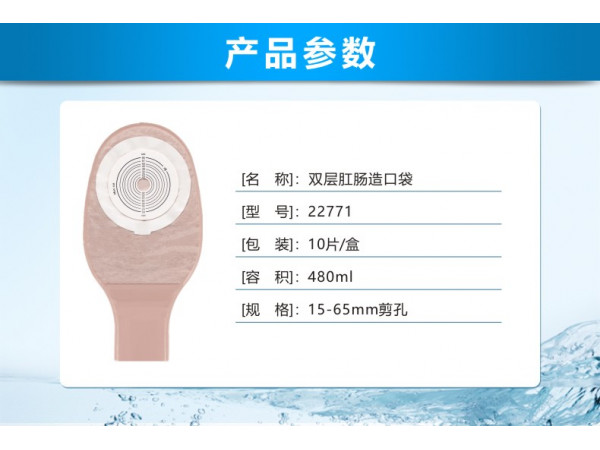 產(chǎn)品說(shuō)明:為回腸、結(jié)腸、直腸或尿道造口的護(hù)理器械。產(chǎn)品接觸完好皮膚和腸內(nèi)腔。非無(wú)菌提供。用于造口排泄物的收集。雙層膠、15-45mm剪孔