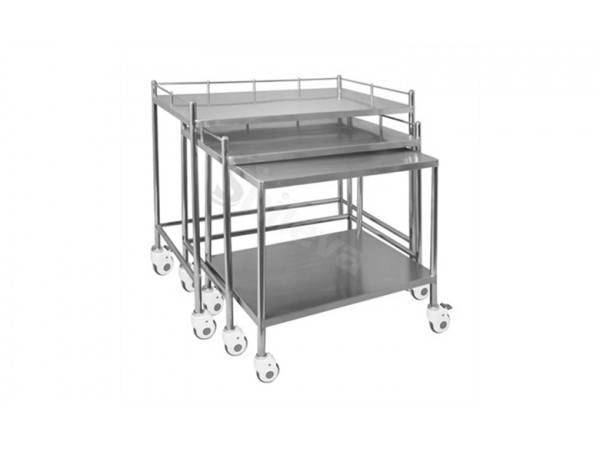 產(chǎn)品說明:? 規(guī)格:1100*610*900,850*530*850,750*490*800mm (L*W*H)? 材質(zhì):優(yōu)質(zhì)不銹鋼。SLV-C4039 Equipment set car? Size:1100*610