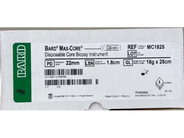 產(chǎn)品說(shuō)明:品牌:美國(guó)巴德BARD名稱(chēng):一次性活檢針型號(hào):MC1825規(guī)格:5支/盒,18g(1.2mm)x25cm,超薄壁型號(hào):MC1820 規(guī)格:5支/盒,18g(1.2mm